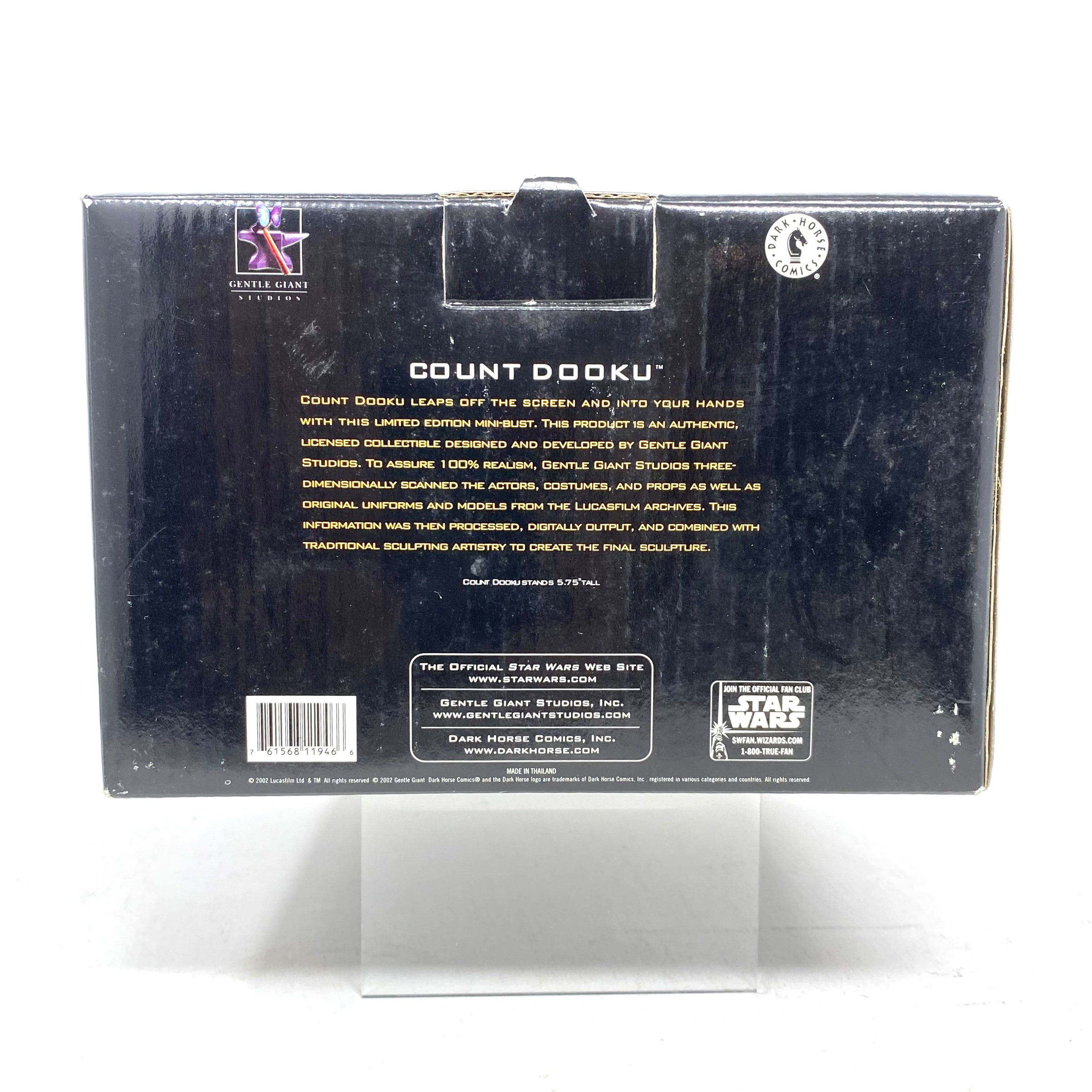 2002 Gentle Giant Studios mini bust of Count Dooku from Star Wars Attack of the Clones. The bust is 6" tall. It is number 510 out of a production run of 2500.