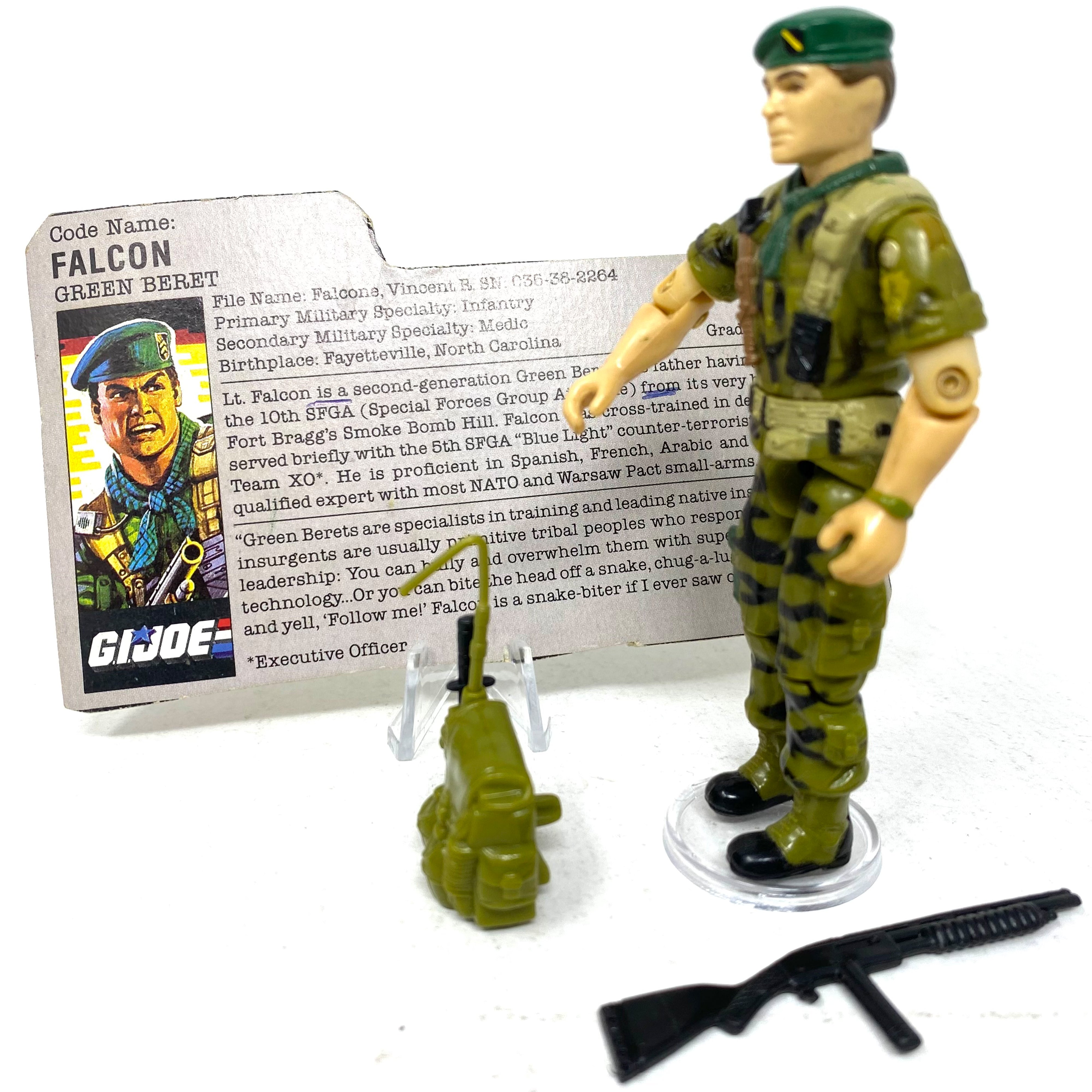 Infantry, Vincent Falcone is a second-generation Green Beret, his father having served with the 10th SFGA from it's very beginnings at Fort Bragg's Smoke Bomb Hill. Falcon was cross-trained in demolitions and served briefly with the 5th SFGA "Blue Light" counter-terrorist unit as an "A" Team XO. Includes: Special Forces Field Communications Pack w/ antenna, 12-Guage Pump Shotgun, Bowie Survival Knife and File Card.