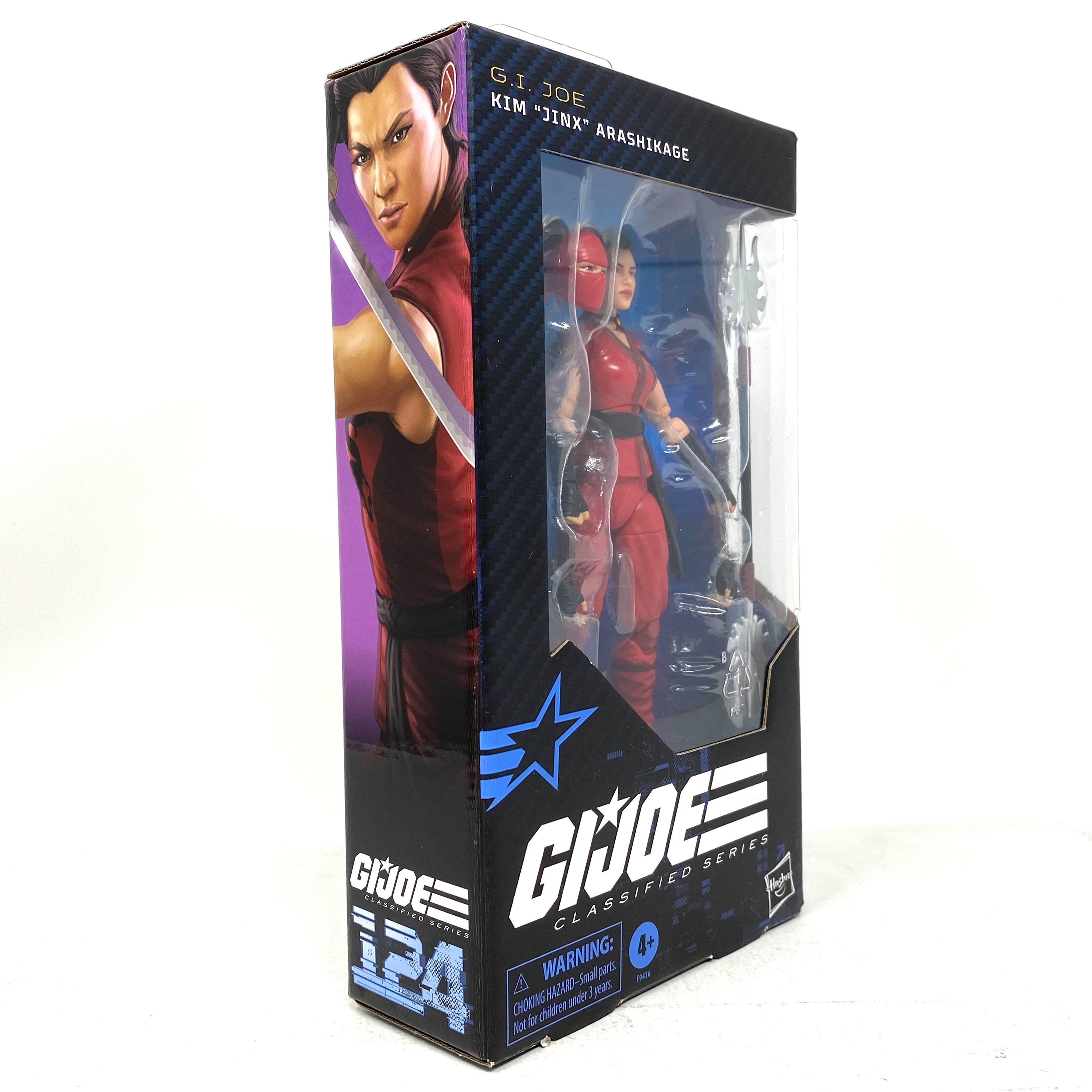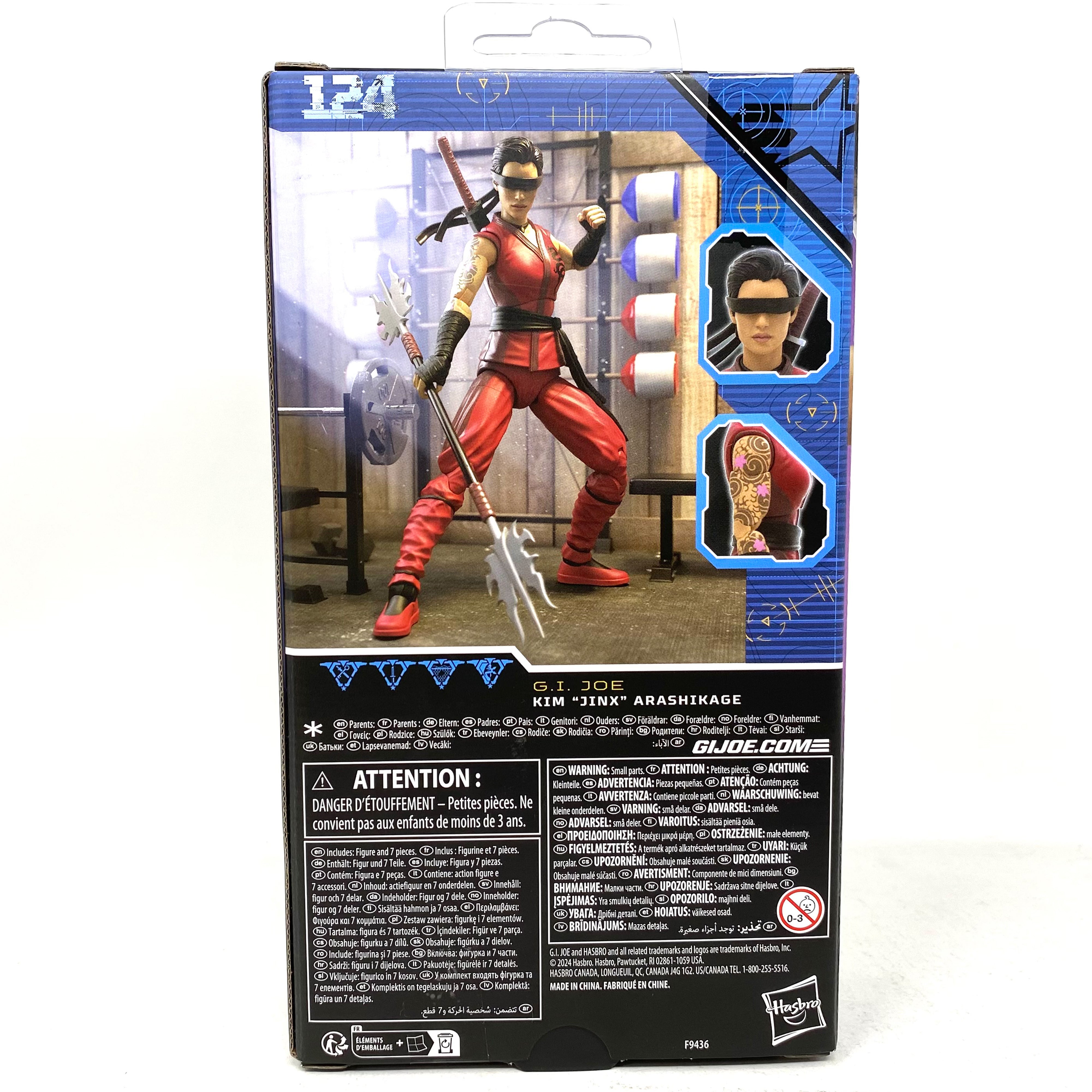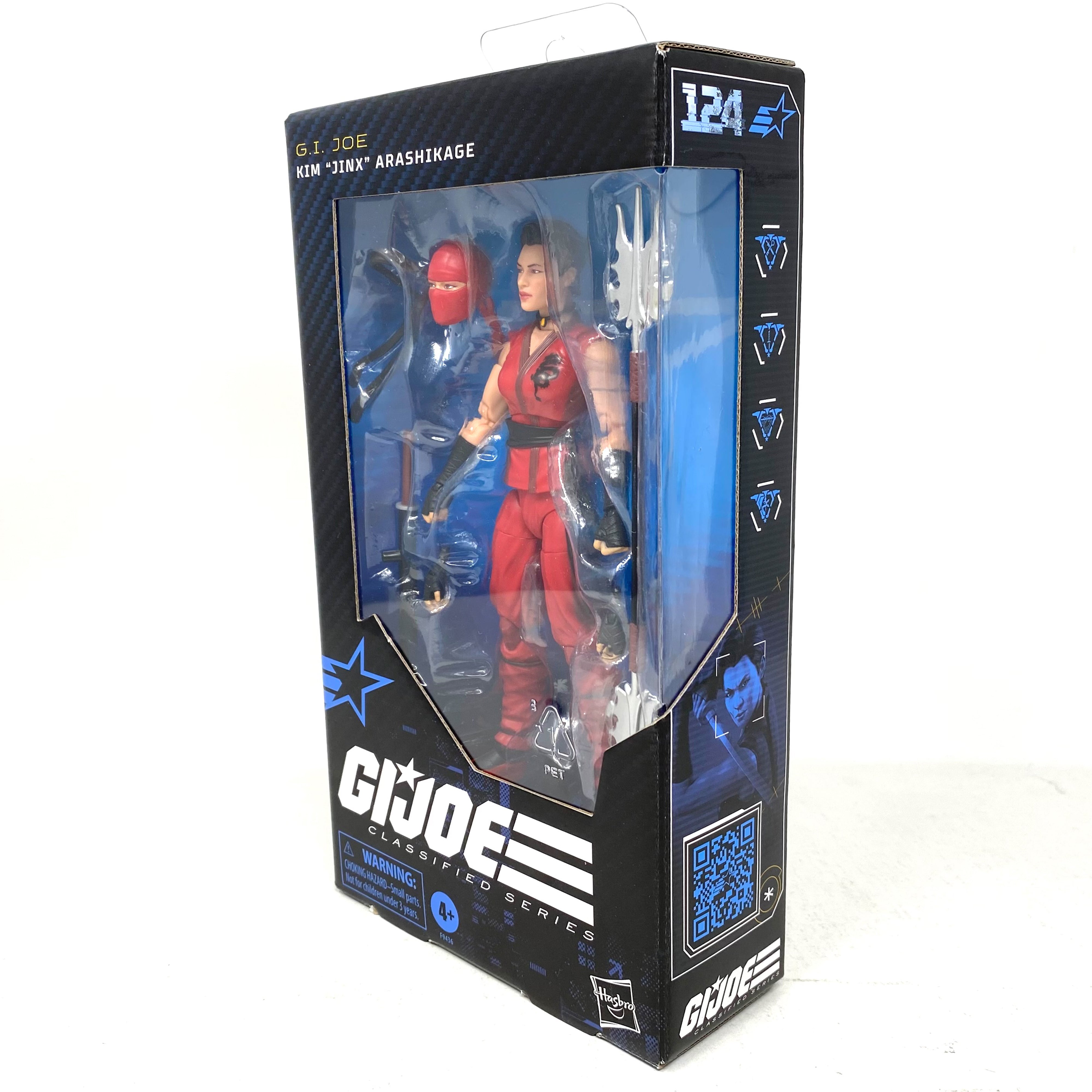 New to the G.I. Joe Classified Series line, Kim "Jinx" Arashikage comes ready for adventure, with multiple points of articulation for high poseability. This Jinx figure contains 7 character-inspired accessory pieces including alternate masked head, alternate hands, katana, scabbard, naginata spear, and blindfold to recreate her iconic training scene from G.I. Joe: The Movie.